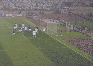 这是全场比赛最具争议的一幕:中村俊辅开出角球,国足门前一片混乱,中田浩二近距离用手将球打进,比分1-2!
